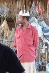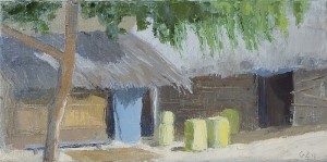 Met de hele troep naar een dorp in de duinen, elk begeleid door een persoonlijke assistent, die de spullen droeg en voor water zorgde. In het begin waren zowel de bewoners als wij wat afwachtend, maar tegen zonsondergang, toen we klaar waren met schilderen, was het ijs gebroken werd er voor ons gezongen en gedanst en werden we zelf uitgenodigd om mee te doen.
