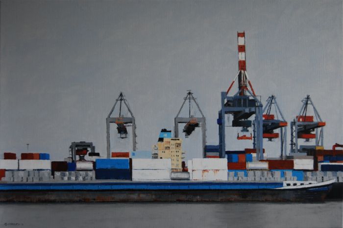 Finished the harbor painting. The ship in the foreground was even much longer.
