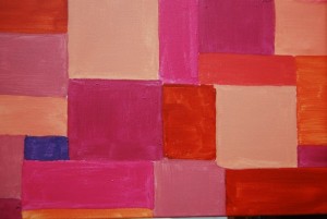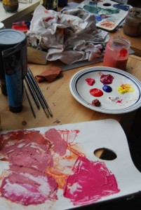 Ronald wilde graag ontdekken of schilderen iets voor hem is. Twee dagen heeft hij bij mij in het atelier allerlei dingen uitgeprobeerd met verf. Ik geloof dat hij het leuk vond.