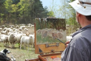 ’s Middags had Peter Rijs een kudde schapen voor ons geregeld én een cameraman die het schilderen van de schapen vastlegde.