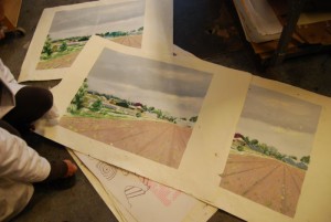 Business Art Service asked Mike and Gita Leach to make a screenprint of one of my landscapes. Yesterday I was allowed to watch. They need more than 30 prints to print all the colours in my painting. It is a time-consuming task, but BAS will have 40 copies when they are ready.