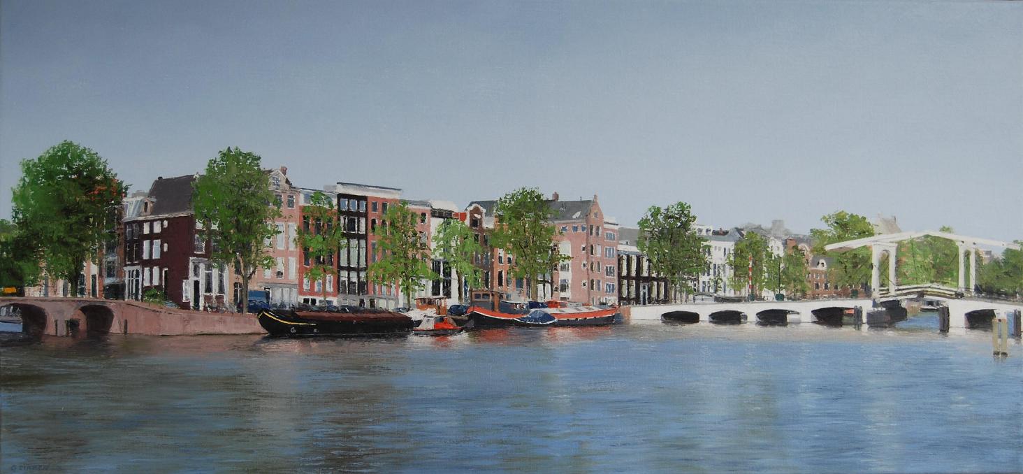 This painting was made by commission. The people wanted a large painting of this particular part of the Amstel River. It is 150 cm wide.