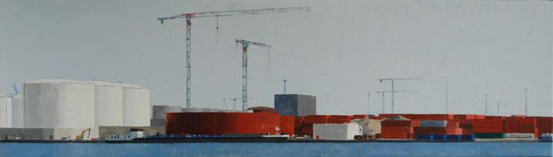 Ik heb veel schilderijen gemaakt in de havens van Amsterdam en Rotterdam, en daar ben ik nog lang niet uitgekeken, maar dit keer was ik in Antwerpen.